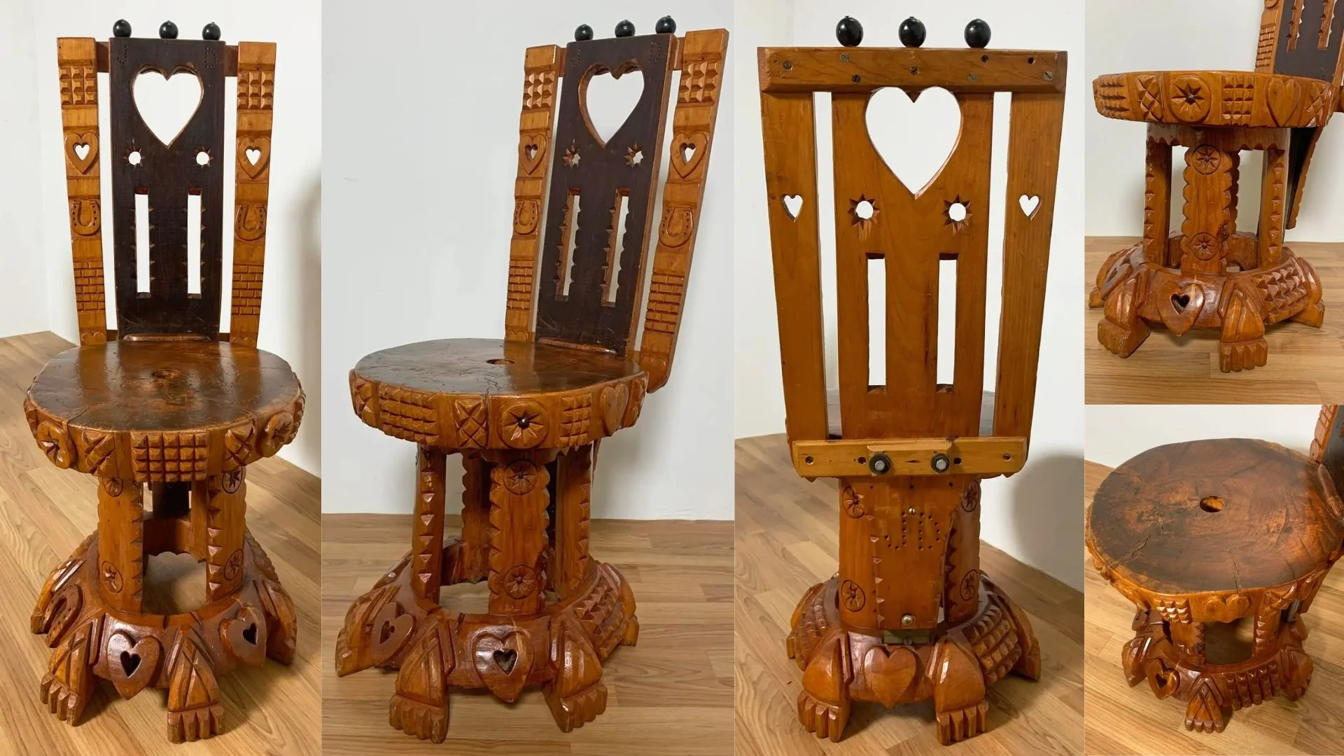 Reference: Circa 1950s Hand-Carved Folk Art Chair by Joseph Deveau